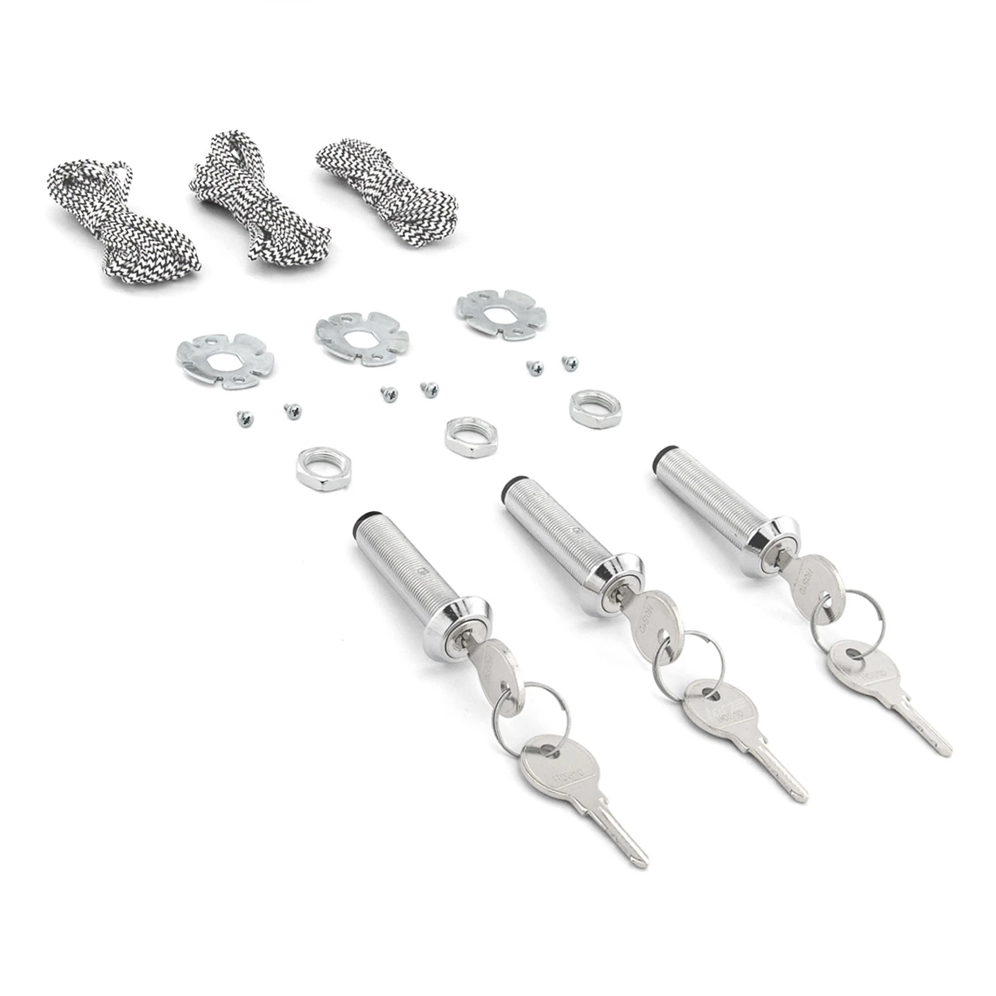 Die Hörmann Notentriegelung NET 4-3 als gleichschließende Ausführung im 3er-Set wird bei doppelwandigen Garagentoren ohne Griffgarnitur verwendet. Auch für Flügeltore der Firma Hörmann oder für Fremdfabrikate eignet sich dieses Notentriegelungsschloss durch die 3,20 m Seillänge optimal. Eine Notentriegelung muss bei allen Garagentoren eingesetzt werden, die mit Torantrieb betrieben werden und und den einzigen Zugang zur Garage darstellen. Sie ermöglicht das manuelle Öffnen des Tores von außen, sodass auch bei Stromausfall das Tor bedient werden kann. Mit dem 3er-Set in gleichschließender Ausführung können 3 Garagentore im Bedarfsfall mit einem Schlüssel entriegelt werden.