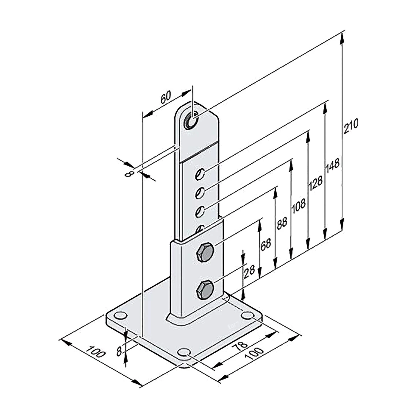 - Grundplatte: 100 x 100 mm mit Träger